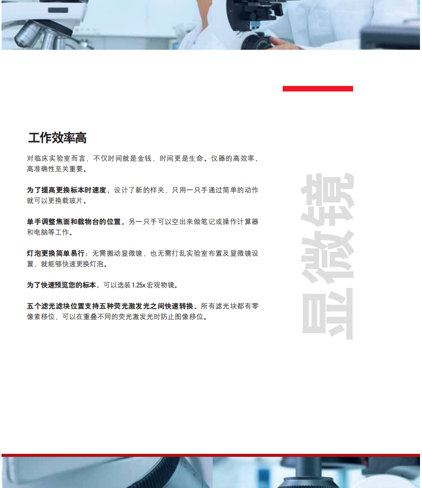 工作條件 ? 環(huán)境溫度: 15℃~30℃ 相對(duì)濕度: 5-65% 工作電壓: 90~230、50Hz 技術(shù)性能指標(biāo) ? 機(jī)身: 一體化機(jī)身,防震機(jī)座,穩(wěn)定結(jié)構(gòu),可作明場(chǎng)觀察,可擴(kuò)展熒光、相差、暗場(chǎng)、偏光、DIC等觀察 光學(xué)系統(tǒng): 無(wú)限遠(yuǎn)校正光學(xué)系統(tǒng) 物鏡轉(zhuǎn)盤(pán): 電動(dòng)6位物鏡轉(zhuǎn)換器 調(diào)焦: 調(diào)焦旋鈕高度可調(diào),調(diào)焦與X-Y調(diào)節(jié)全對(duì)稱(chēng), 實(shí)現(xiàn)無(wú)疲勞操作 照明裝置: 12V30W鹵素?zé)?抽屜式操作,更換不需要工具 濾色片: 日光平衡濾色片 載物臺(tái) 超硬淺色鍍陶瓷載物臺(tái),用戶(hù)可自己將操作桿左右手更換 樣夾: 可單手操作樣夾, 方便同時(shí)記錄 觀察鏡筒: 寬視野三目鏡筒,能100%分光;FOV=25mm 聚光鏡: 帶與物鏡放大倍數(shù)相匹配的孔鏡光欄彩色標(biāo)記, 科勒照明,自動(dòng)適配物鏡 目鏡 10X寬視野目鏡,視野數(shù)為22mm; 物鏡: 高級(jí)平場(chǎng)消色差物鏡 ? 4X, NA=0.10, WD≥18mm ? 10X , NA=0.25, WD≥5.8mm ? 20X, NA=0.40, WD≥0.39 mm ? 40X, NA=0.65, WD≥0.36mm ? 100X NA=1.25 WD≥0.12mm 消耗品: 12V30W鹵素?zé)襞?個(gè) 100W貢燈燈泡2個(gè) 附件: 熒光裝置 ?