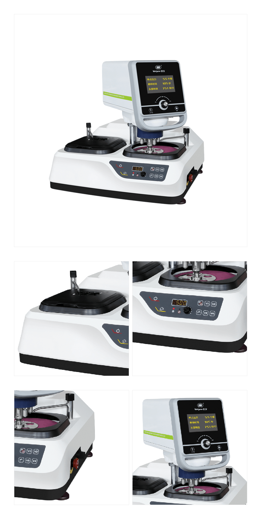 本機(jī)采用了微處理器控制系統(tǒng),使得磨拋盤、磨拋頭的轉(zhuǎn)速實(shí)現(xiàn)無級可調(diào),制樣壓力、時間設(shè)定直觀、便捷。操作者只需更換磨拋盤或者金相砂紙和拋光織物即可完成磨、拋工序的操作,從而使本機(jī)展現(xiàn)了更加廣泛的應(yīng)用性。本機(jī)具備磨拋盤旋轉(zhuǎn)方向可任意選擇、磨拋盤可快速更換;多試樣夾持器和氣動單點(diǎn)加載;磨料自動配送(分液器可選配)等功能,還具有轉(zhuǎn)動平穩(wěn)、安全可靠、噪音低及采用鑄鋁底座增加了磨拋的剛性等特點(diǎn)。